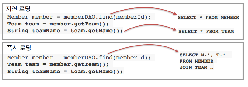 즉시 로딩의 경우 JOIN SQL로 한 번에 연관된 객체까지 미리 조회하는 것을 말한다.