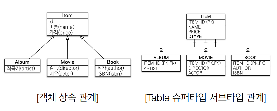 다음과 같이 상속 관계에 있는 Item과 Album, Movie, Book 객체에 대해서
