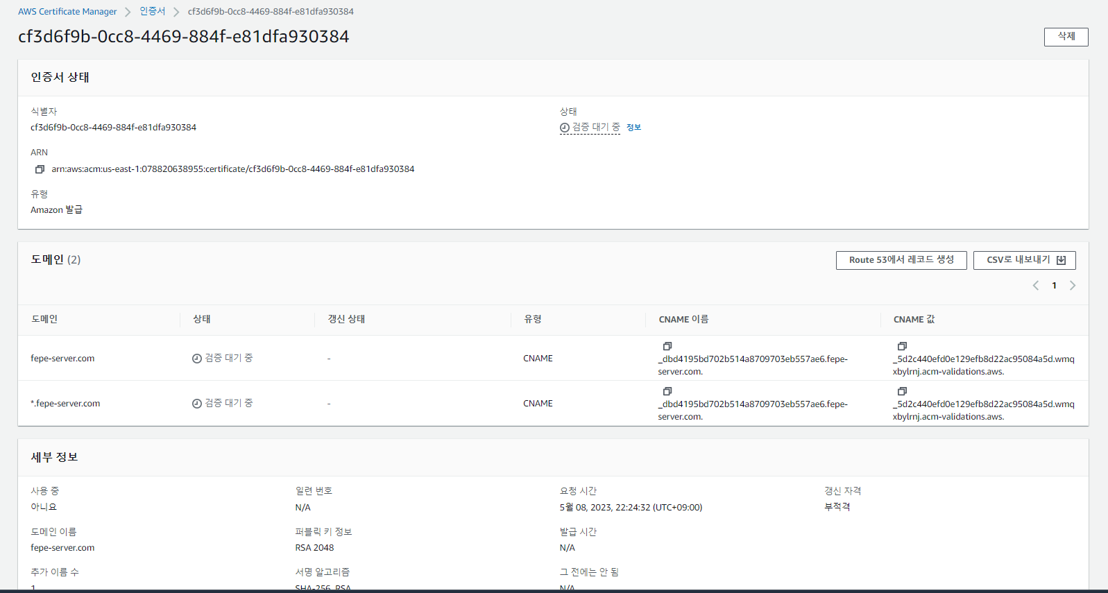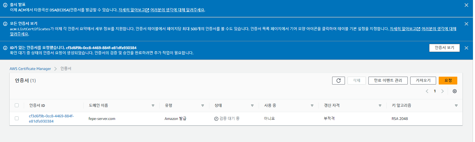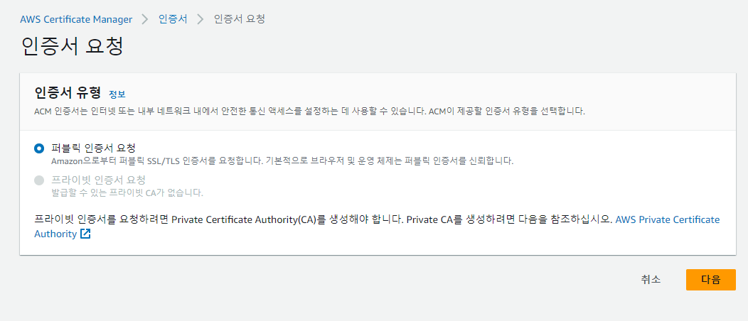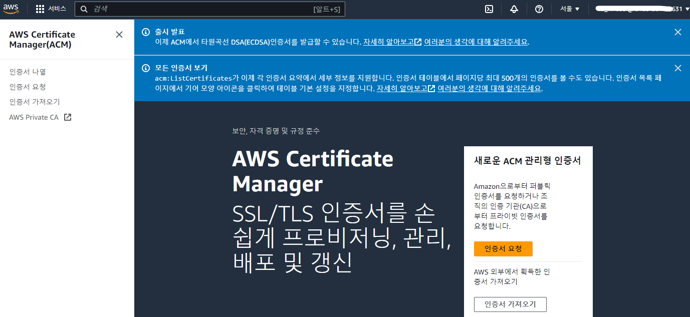 AWS Certificate Manager에서 SSL 인증서 발급