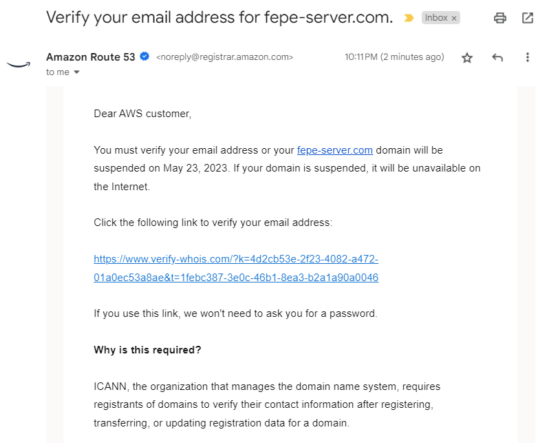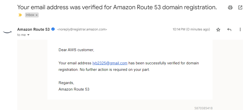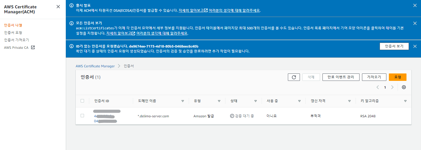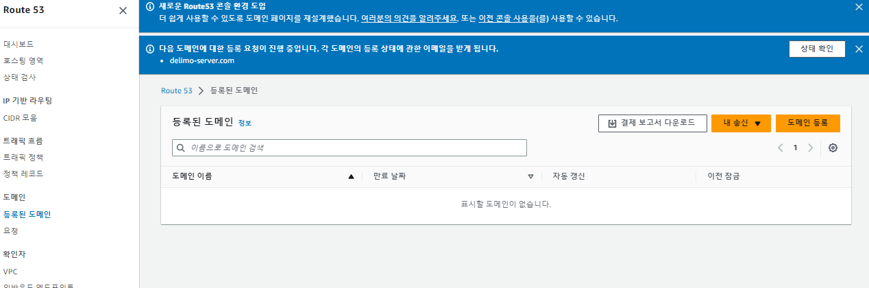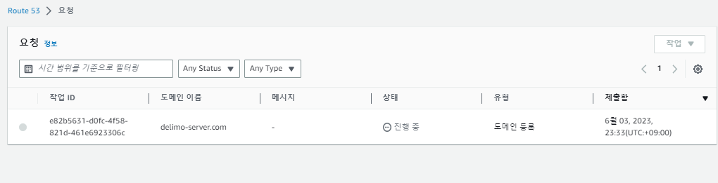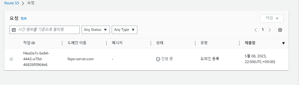 아래와 같이 Route 53 > 요청에서 도메인 등록이 진행중인 것을 확인할 수 있다.