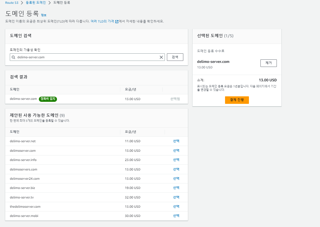 delimo-server.com 를 사용하고자 한다! 먼저 도메인의 가용성을 먼저 확인해보자.