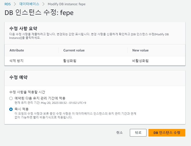 [AWS/RDS] 이 데이터베이스는 삭제 방지 옵션이 활성화되어 있습니다 문제 해결하기 본문