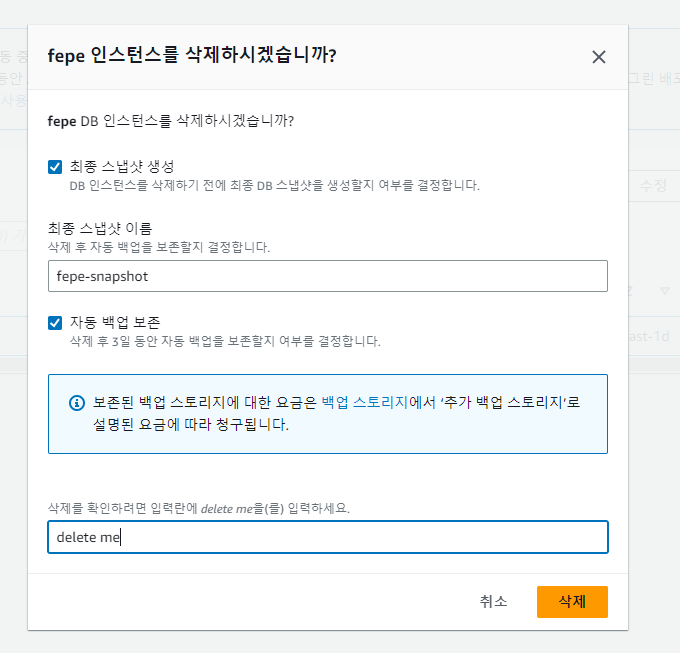 DB 최종 스냅샷은 꼭 생성하도록 하자!
