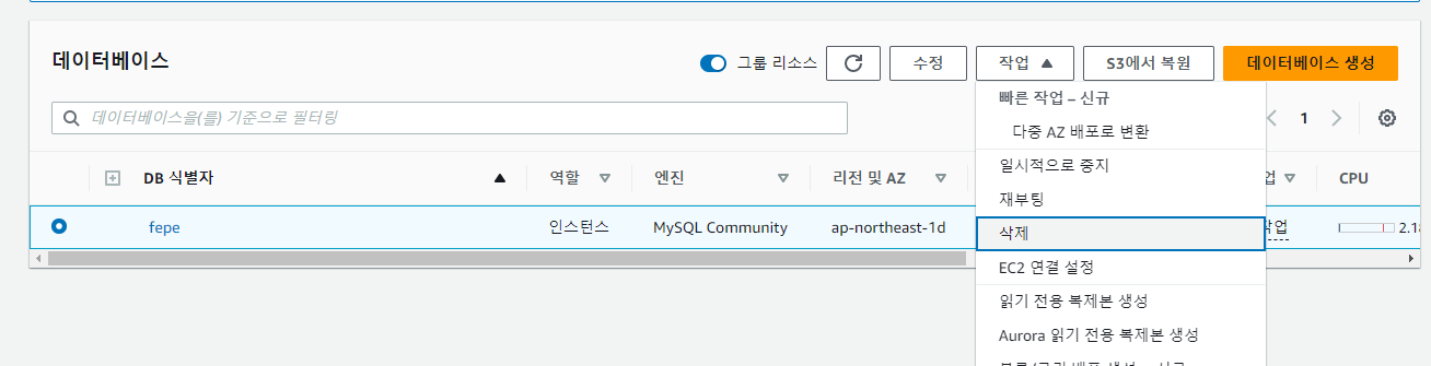 결국에 스냅샷을 저장하고 RDS 인스턴스를 삭제하기로 결정하였다.