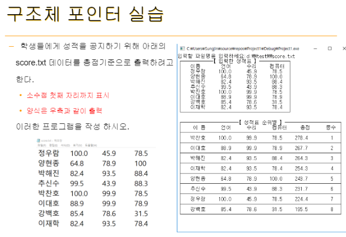 // 동적 메모리 할당 후, 파일로부터 입력 받고, 총점 구하기