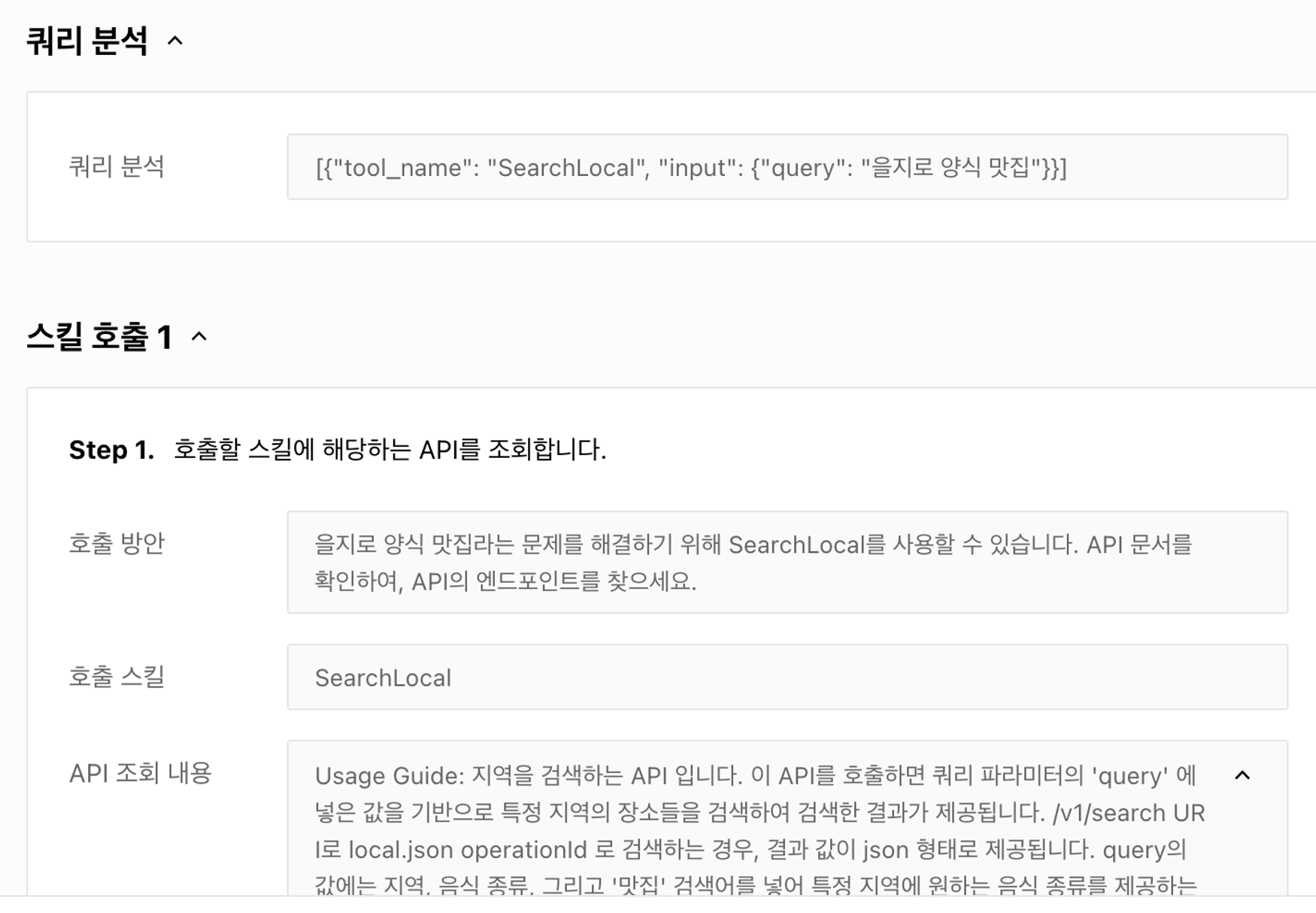 Manifest 정보로는 보다 구체적으로 지역 검색 API에 대한 정보를 모델에게 설명하는 프롬프트를 작성해주었습니다.