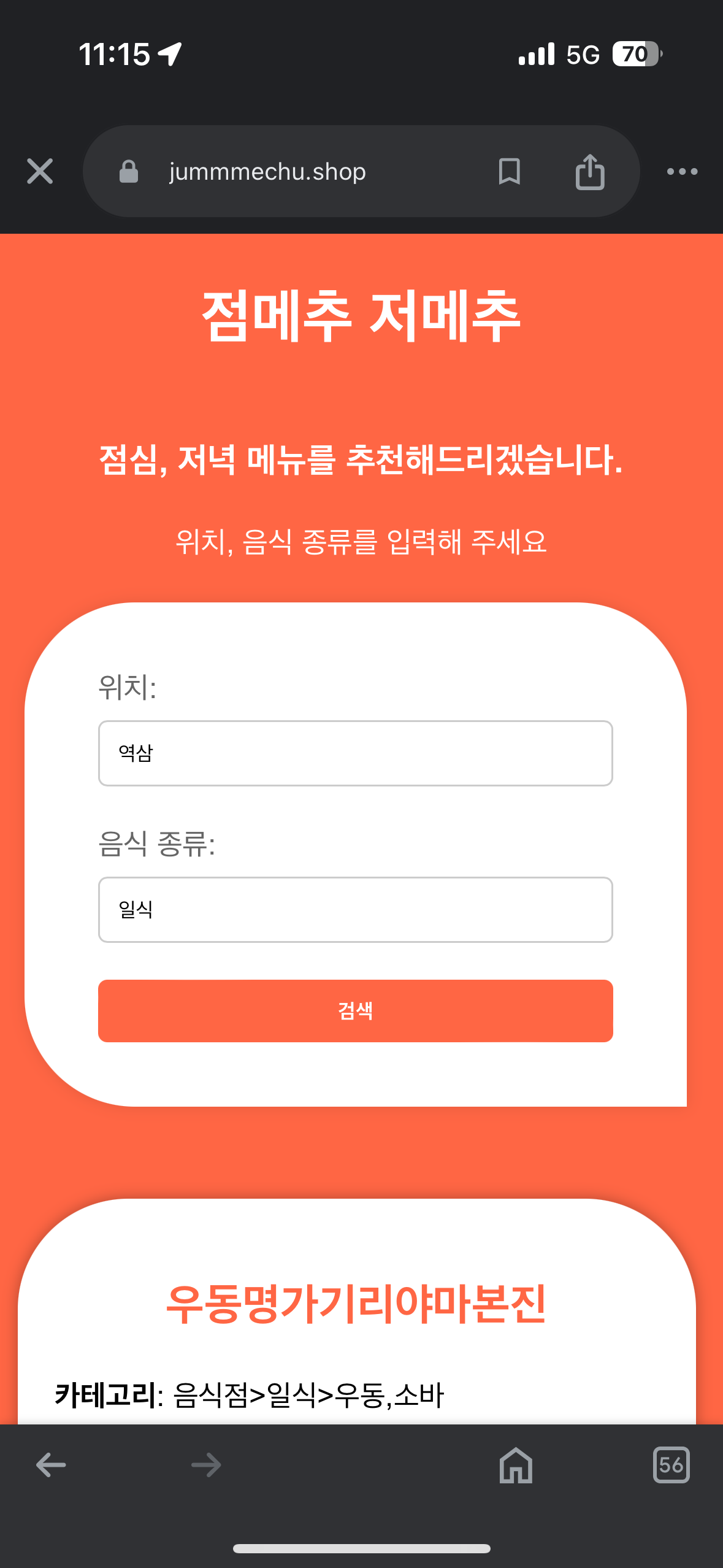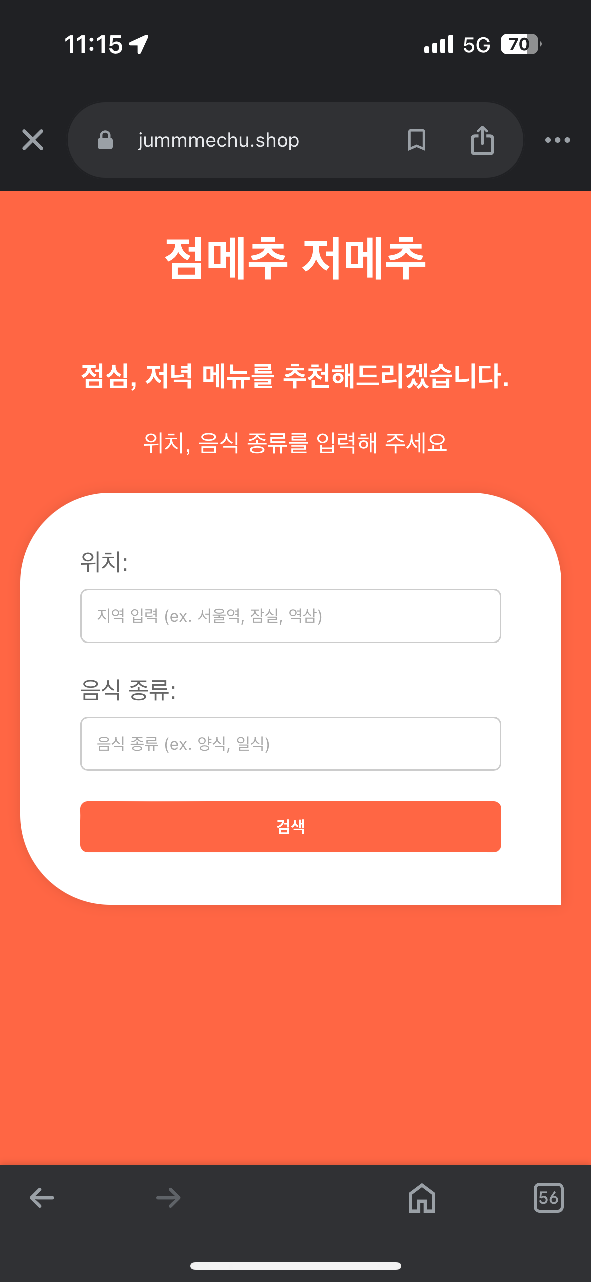 남은 시간 동안 '점메추저메추' 서비스의 프론트 앞단 부분들을 조금 더 다듬어 사용성 있는 서비스로 개선해 나가보려 합니다. :)
