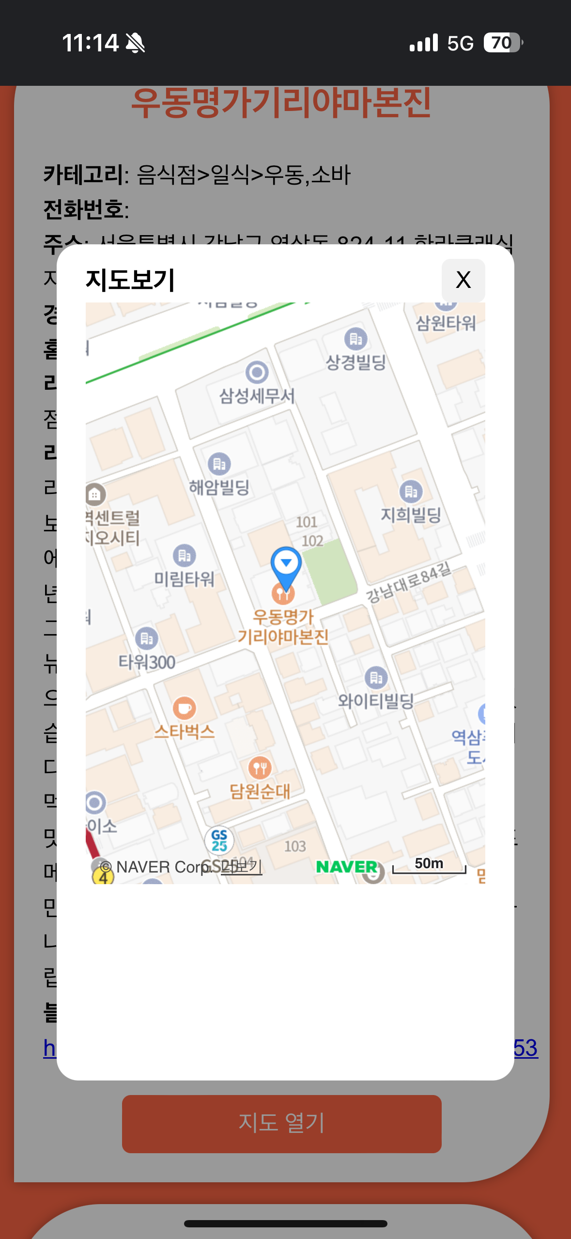 위치와 음식 카테고리를 기반으로 Naver Search API를 활용해 장소(음식점)을 검색하고, Naver Blog Search API를 통해 각 음식점에 대한 리뷰를 남긴 블로그로부터 Beautiful Soup 라이브러리를 기반으로 블로그의 텍스트를 추출하고, 해당 텍스트를 하이퍼클로바X 모델을 활용하여 블로그 내용을 요약하여,