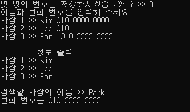 cout << endl << "검색할 사람의 이름 >> ";