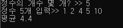 cout << "정수 " << n << "개 입력>> ";