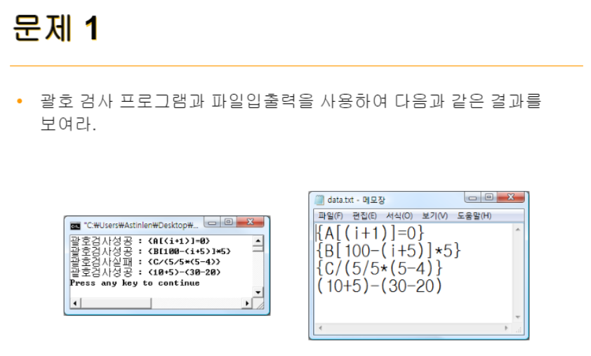 만약 그 결과값이 FALSE라면 왼쪽 괄호가 오른쪽 괄호의 숫자와 짝을 이루어 스택에 저장되지 않았다는 것을 의미한다.