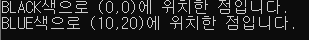 void show(){cout << color<<"색으로 ("<<getX()<<","<<getY()<<")에 위치한 점입니다."<<endl;}