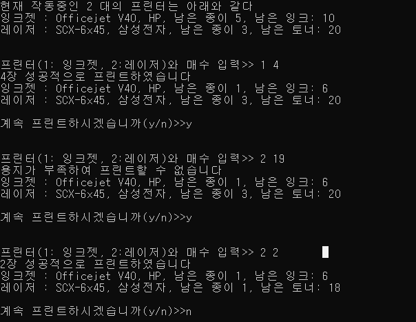 cout<<"용지가 부족하여 프린트할 수 없습니다"<<endl;